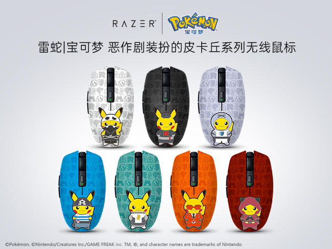 | 商品网址 | 雷蛇|宝可梦 皮卡丘款电脑座椅:https://detail.tmall.com/item.htm?id=687970993520 雷蛇|宝可梦 伊布款电脑座椅:https://detail.tmall.com/item.htm?id=687635216674 雷蛇|宝可梦 皮卡丘款机械键盘:https://detail.tmall.com/item.htm?id=693233099541 雷蛇|宝可梦 皮卡丘款条形音箱:https://detail.tmall.com/item.htm?id=697333624044 雷蛇|宝可梦 恶作剧装扮的皮卡丘系列无线鼠标:https://detail.tmall.com/item.htm?id=684768709328 雷蛇|宝可梦 耿鬼款无线鼠标:https://detail.tmall.com/item.htm?id=700740689650 雷蛇|宝可梦 仙子伊布款无线鼠标:https://detail.tmall.com/item.htm?id=701222891485 雷蛇|宝可梦 胖丁款无线鼠标:https://detail.tmall.com/item.htm?id=700745169423 雷蛇|宝可梦 喷火龙款无线鼠标:https://detail.tmall.com/item.htm?id=700948810295 |