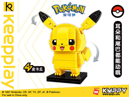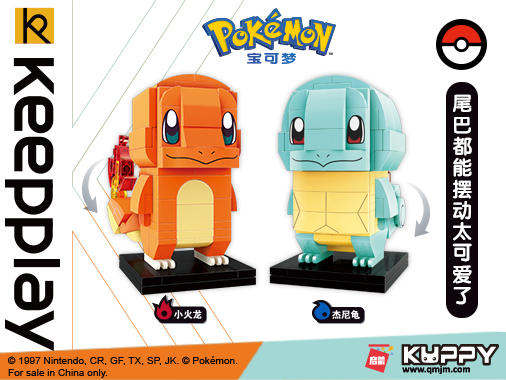 keepplay是目前唯一取得正版授权的中国大陆小颗粒积木品牌,此次keepplay带来的新品高度还原了超受欢迎的6个宝可梦角色,分别是:皮卡丘、伊布、可达鸭、妙蛙种子、小火龙和杰尼龟。