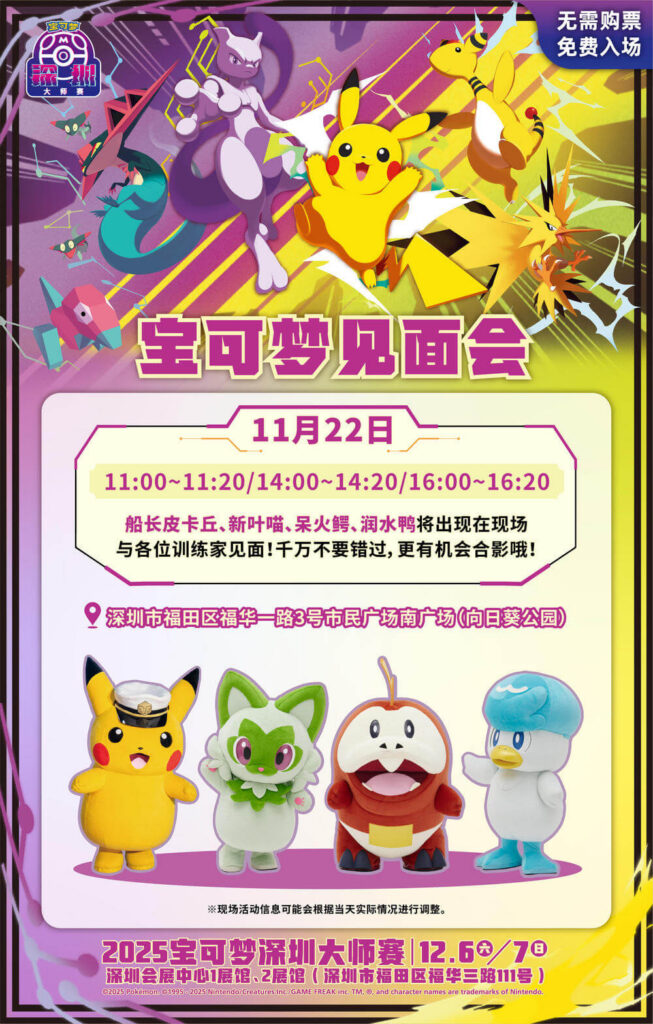 “2025宝可梦深圳大师赛”(以下简称“深圳大师赛”)将于12月6—7日在深圳会展中心1展馆、2展馆(深圳市福田区福华三路111号)举办。