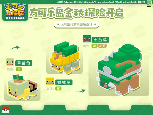 除了两只全新宝可梦的加入,三位旧友也将与我们再度重逢,草苗龟、小火焰猴和波加曼开启特别返场。作为非常泛用的宝可梦,这些昔日的旧友也将再度与我们并肩作战。如果之前错过的话,不妨趁此次返场,将这三只宝可梦加入收藏当中吧!