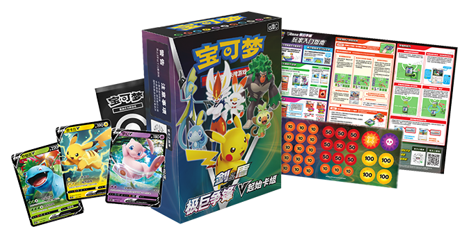 我们也为从【剑&盾】系列开始接触宝可梦卡牌的训练家准备了另外两种商品,你会选择哪款呢?想要马上对战的训练家可以选择【极巨争锋 V起始卡组】,起始卡组均为预设好的构筑卡组,购入后不需任何调整便可开始对战之旅。