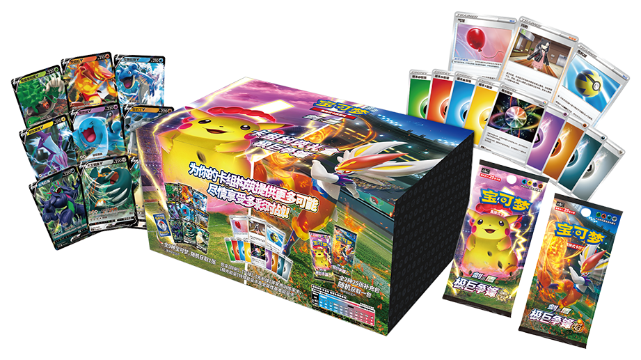想要构筑自己心仪卡组的训练家可以选择【极巨争锋 卡组构筑礼盒】,构筑卡组所必须的卡牌收录其中,搭配补充包构筑出自己的专属卡组吧。