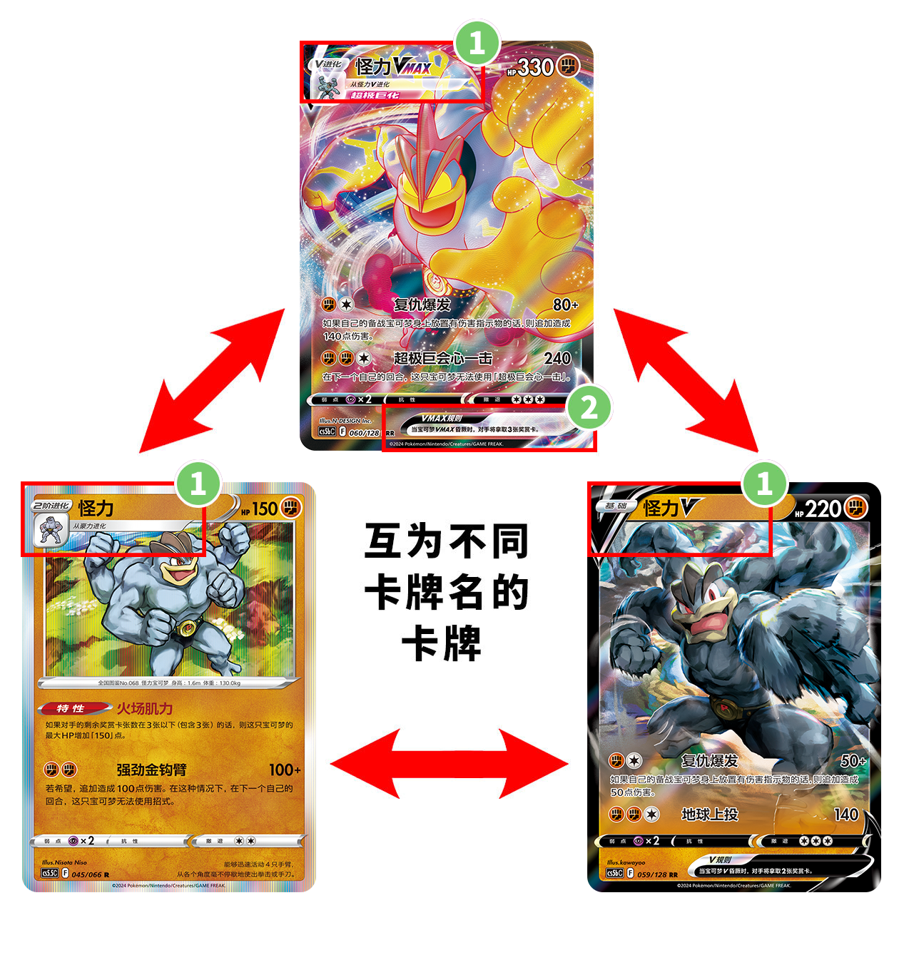- “怪力VMAX”和“怪力V”以及“怪力”互为不同卡牌名的宝可梦。