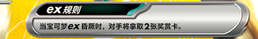- 宝可梦ex的特别规则,一般情况下,当宝可梦ex"昏厥"时,对手将拿取2张奖赏卡。