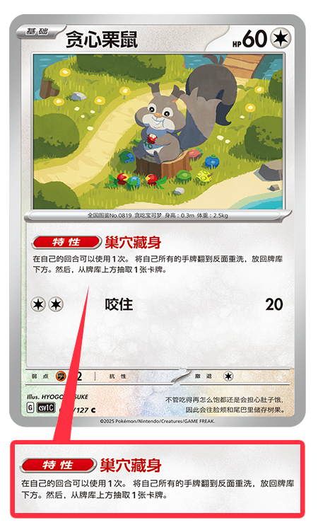 - 有些宝可梦拥有特性。在自己的回合,可以选择使用宝可梦的特性。若要使用宝可梦的特性,需向对手表达使用之意,并仔细阅读特性的说明文后执行特性效果。