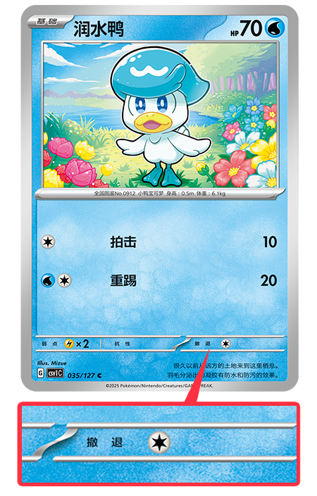 - 在自己的回合可有1次机会,对战斗宝可梦使用“撤退”,将其与备战宝可梦互换。