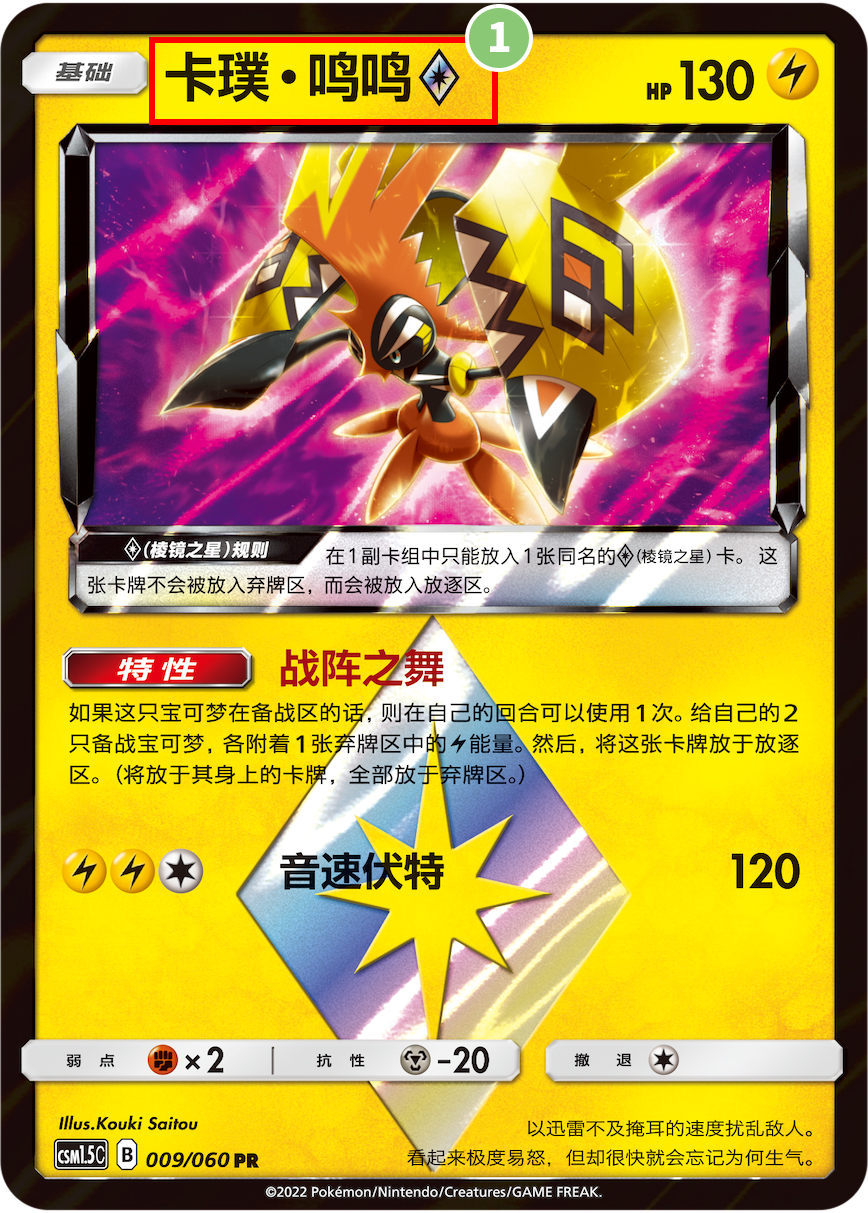 ”与“卡璞・鸣鸣”互为不同卡牌名的宝可梦。