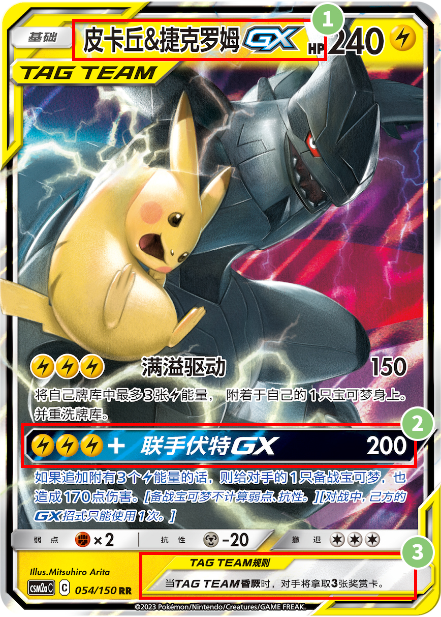 每张“TAG TEAM的宝可梦GX”均由多只宝可梦联手组成,这些卡牌的左上角有着“TAG