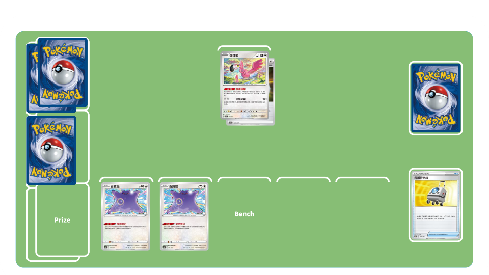 团结之翼卡组-中期:使用宝可梦卡“百变怪”的特性“突然变幻”,学习弃牌区中宝可梦的招式“团结之翼”造成伤害。