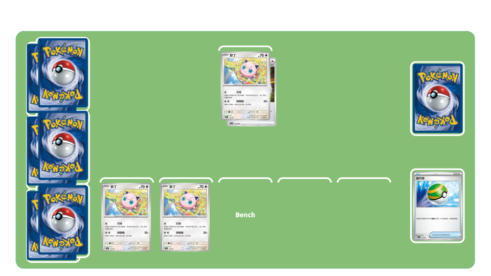 快乐“朋”胀卡组-初期:使用训练家卡“高级球”“雾之水晶”“巢穴球”将更多的宝可梦放于备战区。