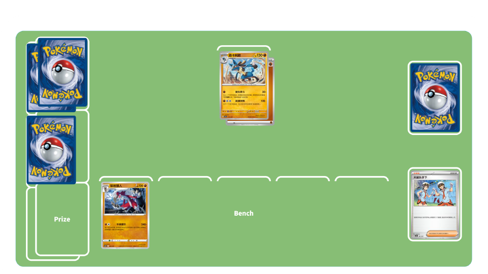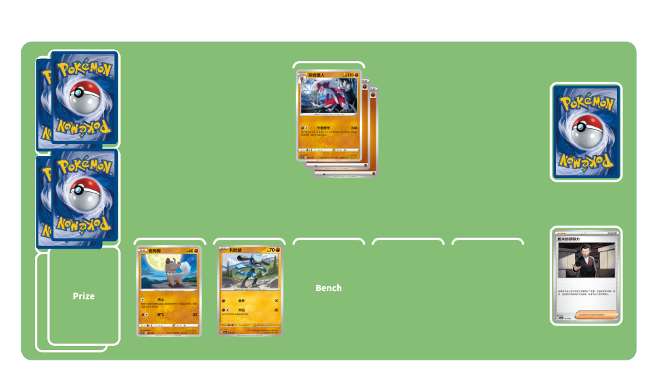 鬃岩狼人的招式可以对还没有附着能量的宝可梦造成240的高额伤害,对手战斗宝可梦每附着一个能量就会减少80伤害。在对手还没有附着能量的时候,让鬃岩狼人发动进攻吧!路卡利欧则是当上个回合自己的宝可梦被昏厥后可以造成150的高额伤害。先派出鬃岩狼人打出高额伤害,待战斗宝可梦被对手的招式伤害昏厥后,让路卡利欧挺身而出,为己方宝可梦“复仇”吧!