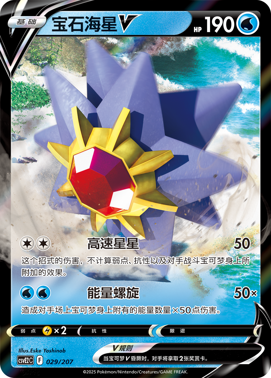 亚空的惊风骇浪卡组-中期:“星耀空扉”,开启通往胜利的大道!物品卡“高级球“不仅能将起源帕路奇亚VSTAR加入手牌,还能将2张“水”能量放入弃牌区,为后续战术铺路。支援者卡“博士的研究”也能在补充手牌的同时,将“水”能量放入弃牌区。物品卡“能量输送”能将基本“水”能量加入手牌,帮助把“水”能量放入弃牌区。在合适的时机,使用起源帕路奇亚VSTAR的VSTAR力量“星耀空扉”,帮助场上的水宝可梦附着能量,吹响进攻的号角。当对手战斗场上的宝可梦附着了多个能量时,宝石海星V便可以造成高额伤害。