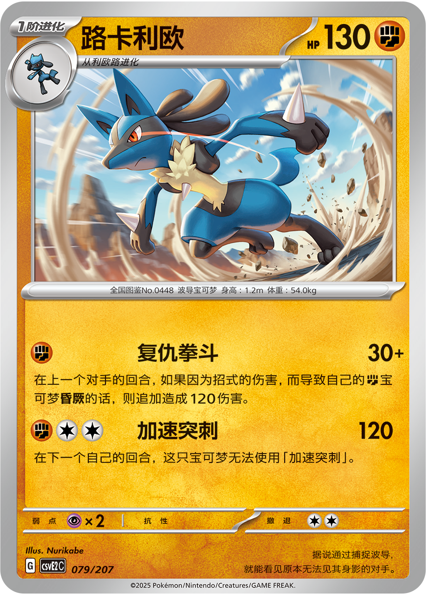 粉碎!獠牙和复仇拳斗卡组-后期:鬃岩狼人被昏厥之后,让路卡利欧来到战斗场,替鬃岩狼人复仇对手,使用出“复仇拳斗”。配合支援者卡“天星队手下”让对手无法顺利使用招式,粉碎对手的游戏计划吧。