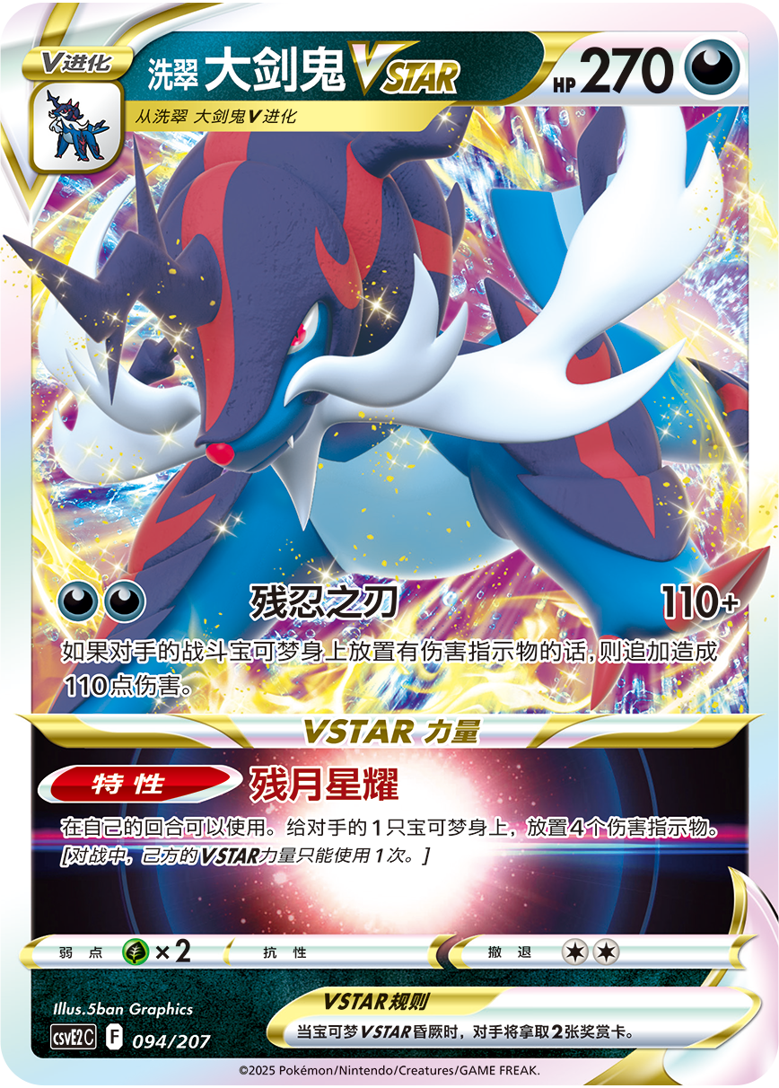 残忍之刃卡组-后期:使用洗翠大剑鬼VSTAR的招式“残忍之刃”,给对手受过伤的宝可梦造成高额伤害吧!