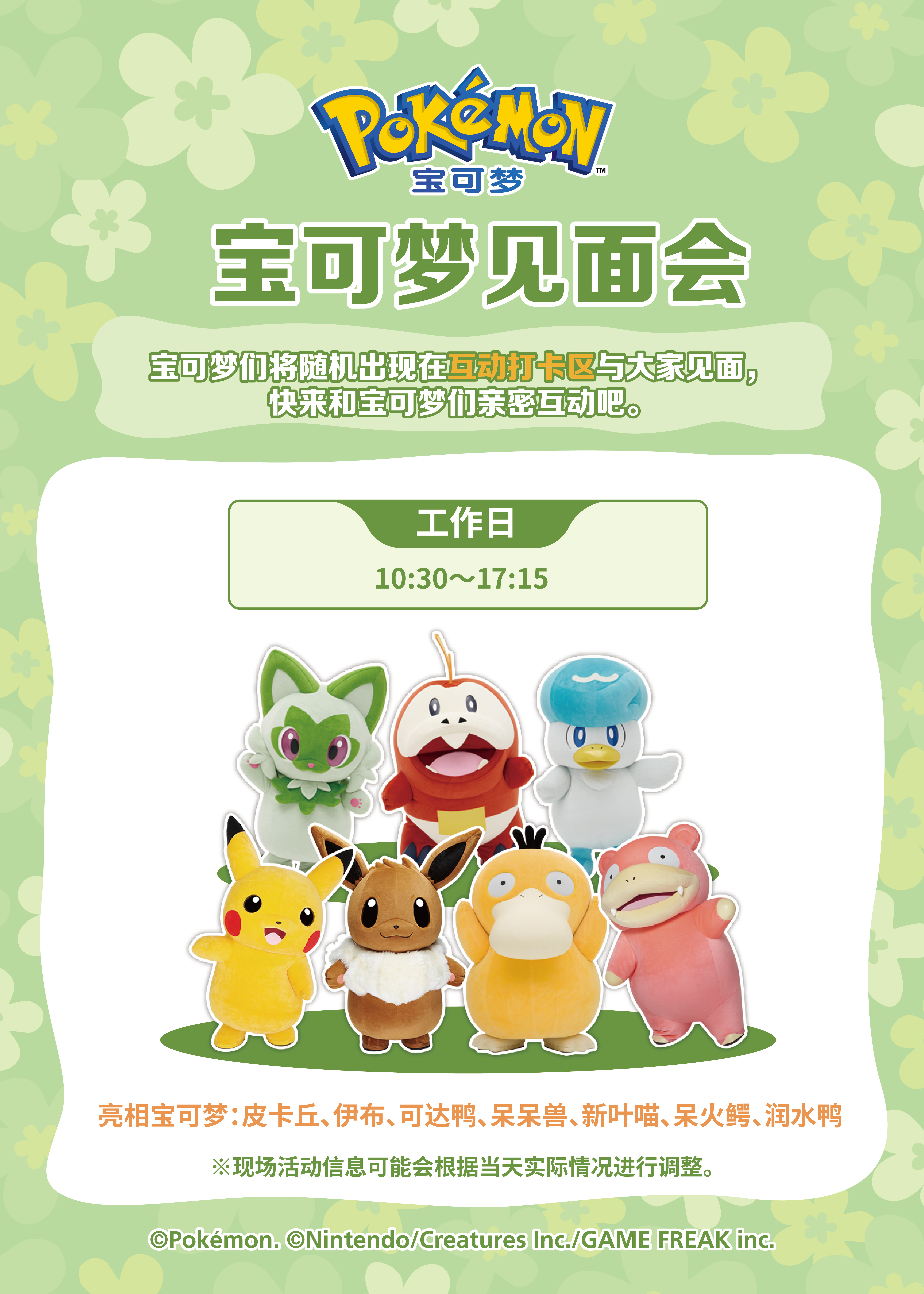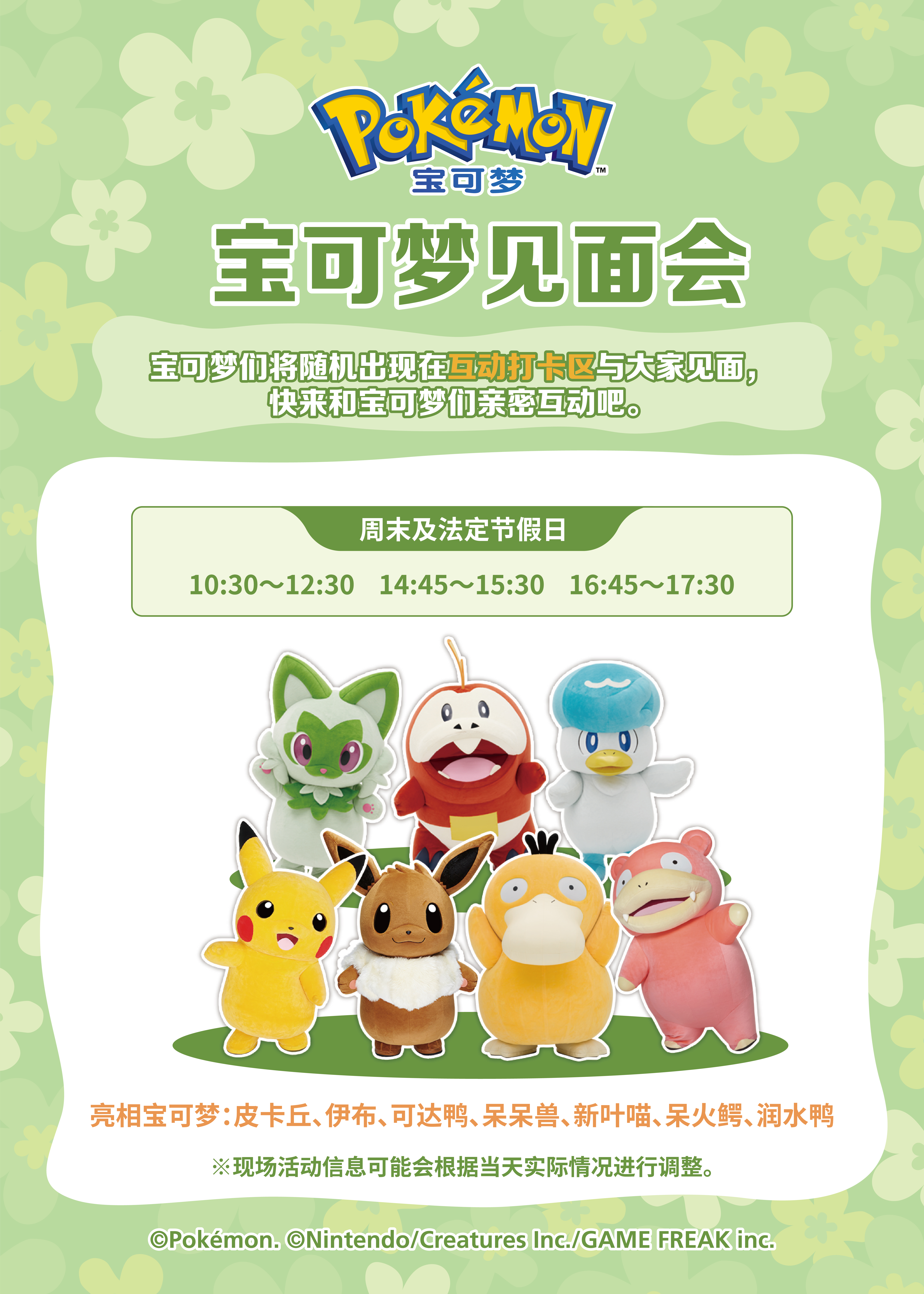 周末及法定节假日还将有丰的主题宝可梦见面会!