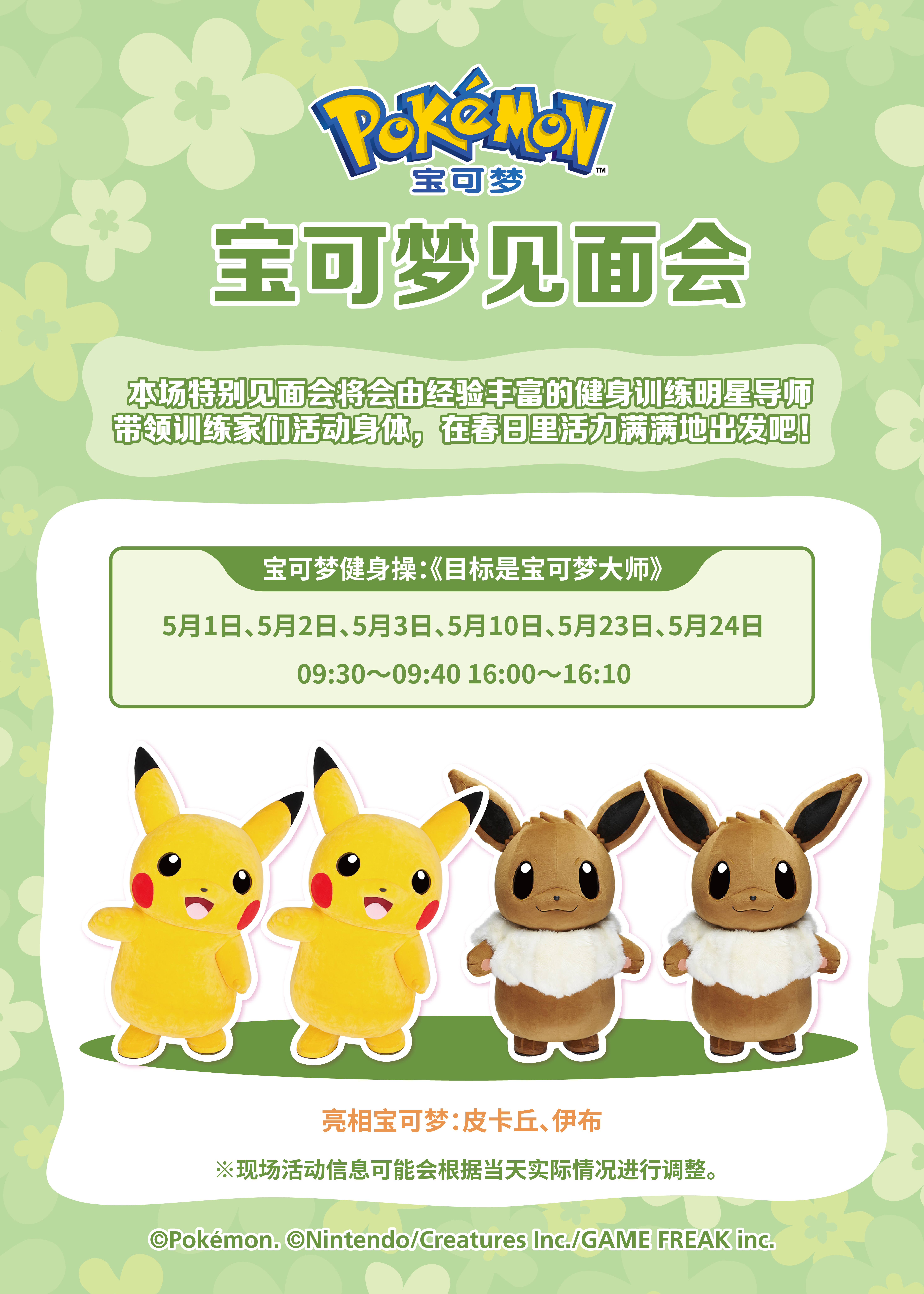 此外,除了以上主题见面会,活动期间还有能与宝可梦一起运动的特别见面会。在晴朗的春季和宝可梦们一起动起来吧!