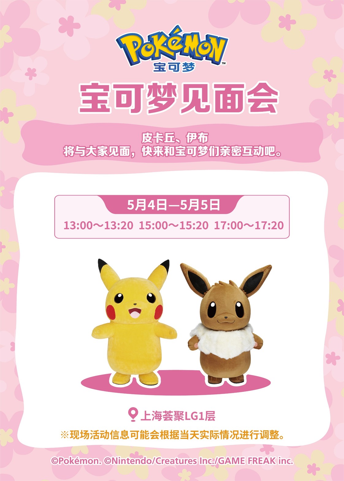 皮卡丘和伊布也将在上海荟聚现场的宝可梦花径漫游集章处与训练家们见面喔!