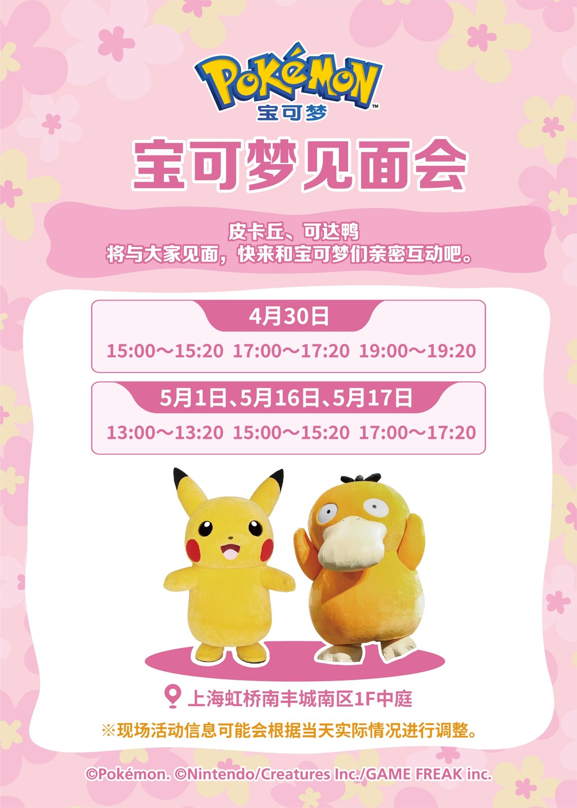 此外,上海虹桥南丰城、上海荟聚现场设有花径漫游集章处,还有绘梦工坊、宝可梦簪花等活动,并将举办宝可梦见面会,期待各位训练家前来体验。