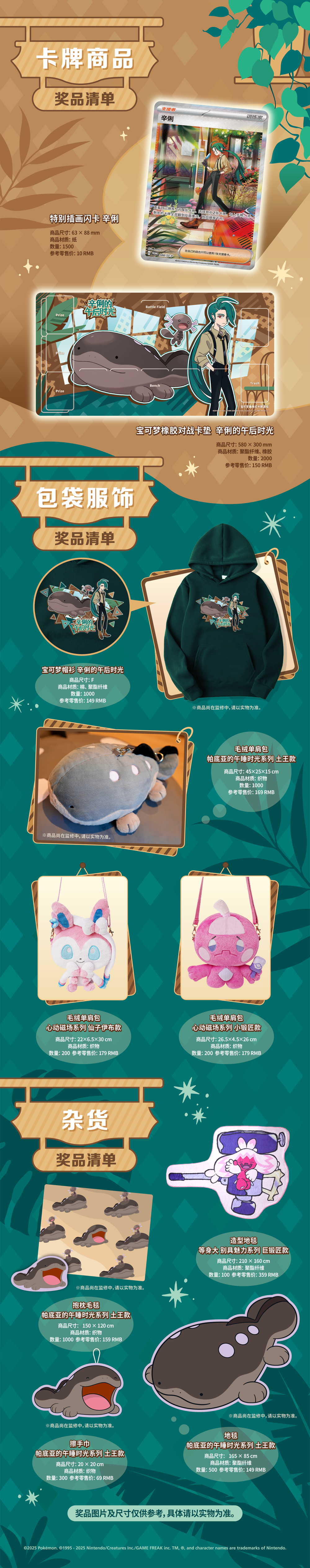 ●若无质量问题(甲醛超标,批次不合格等),奖品恕不退换。若有质量问题,请于快递签收15日内通过“宝可梦卡牌会员”小程序联系客服换货。