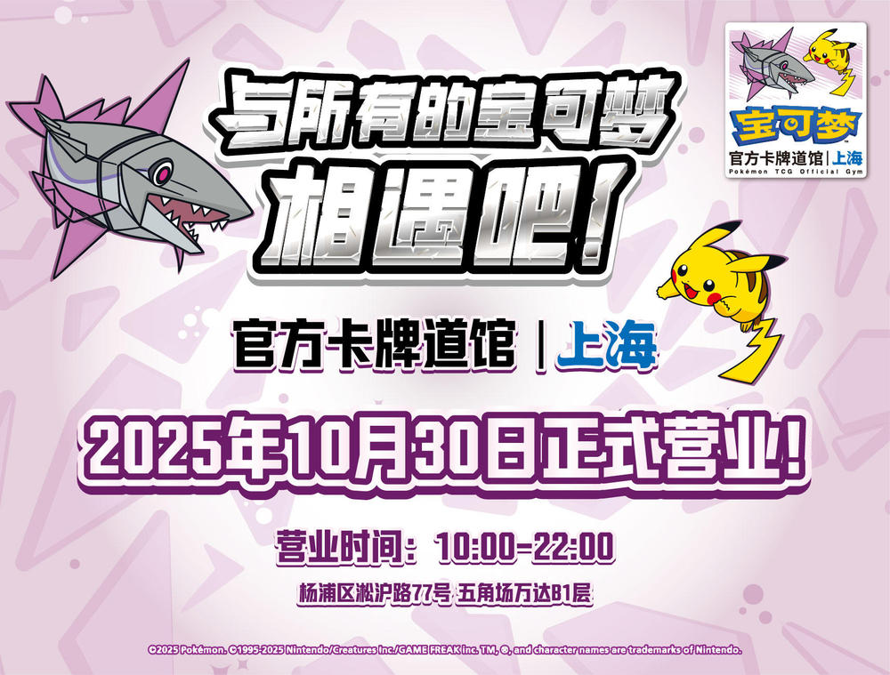 地址:上海市杨浦区淞沪路77号 五角场万达B1层 宝可梦官方卡牌道馆-上海 五角场(轻身鳕)