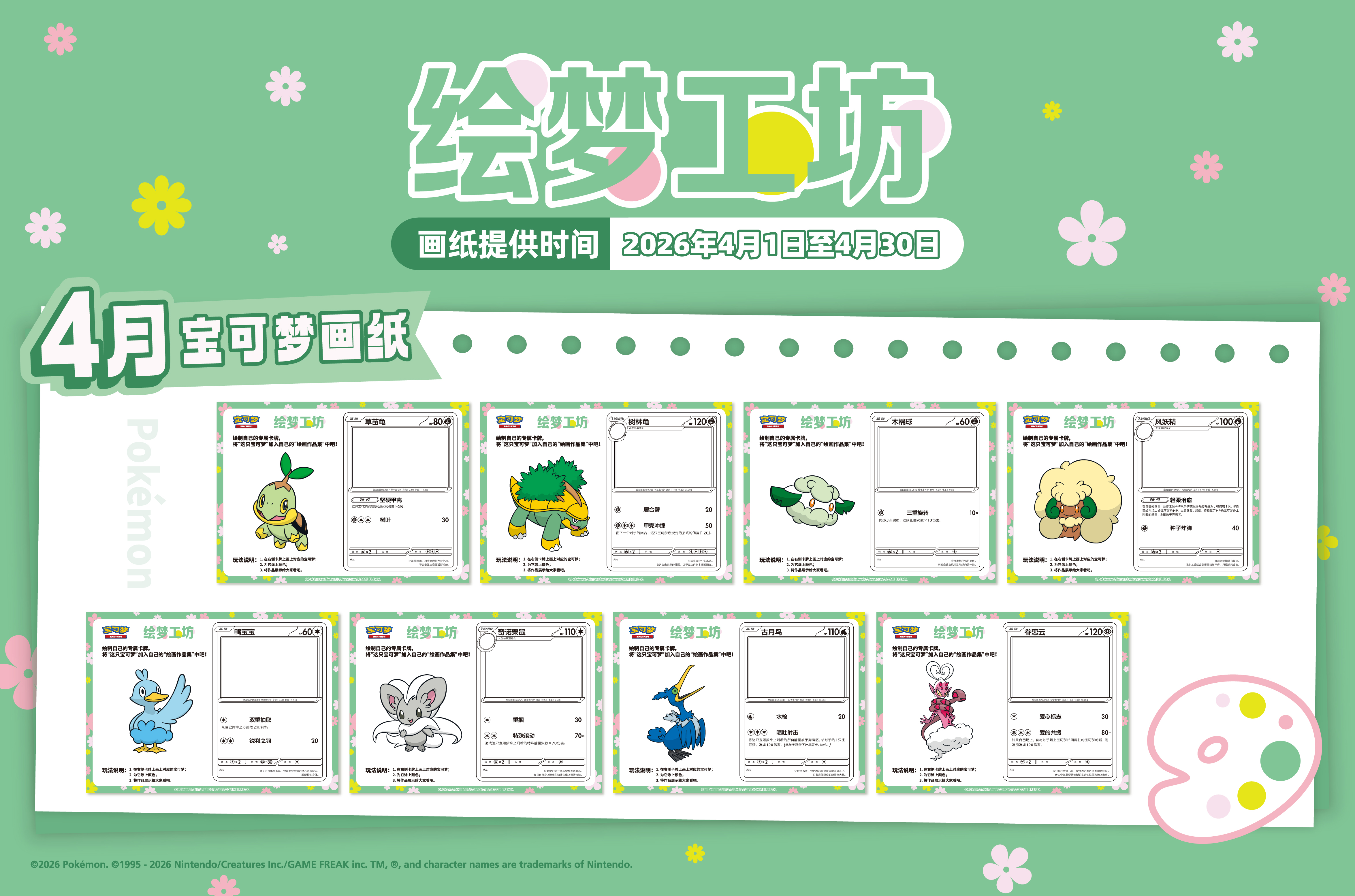 找到工作人员,成功报名活动并核销之后,选择自己喜欢的宝可梦画纸,创作自己的个性化卡牌插画。