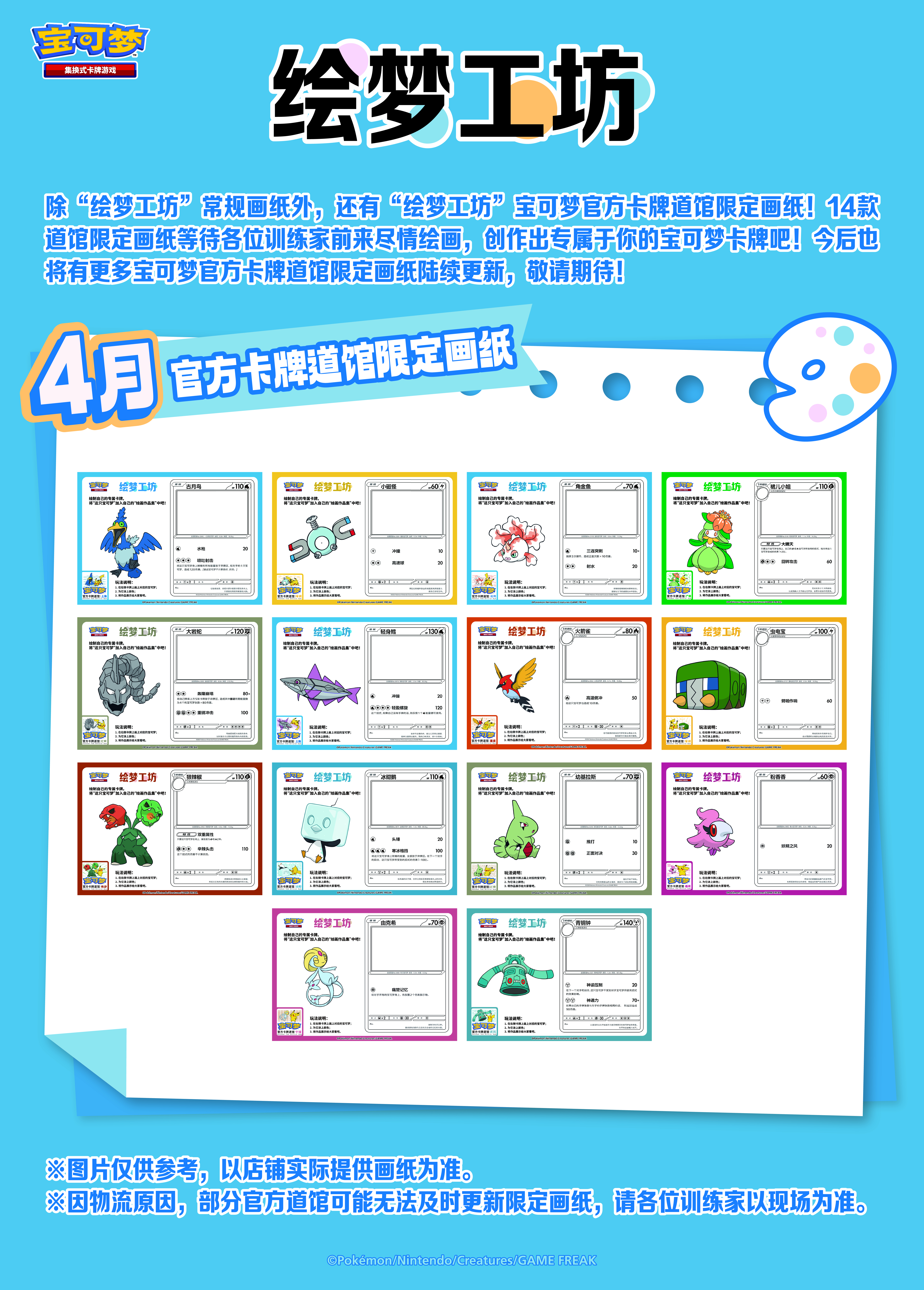 ※因物流原因,部分官方道馆可能无法及时更新限定画纸,请各位训练家以现场为准。