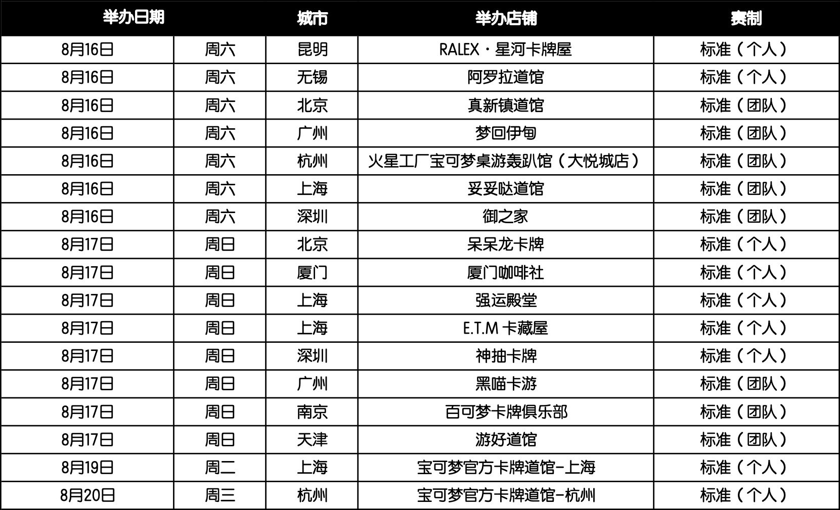 现公布8月16—20日的城市赛举办场次。