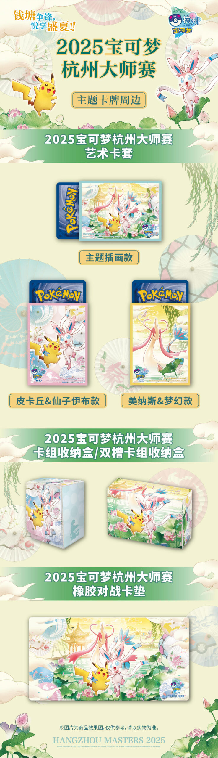 以上卡牌周边商品中,“2025宝可梦杭州大师赛 橡胶对战卡垫” (共3000份)仅限参加杭州大师赛卡牌项目公开组的训练家获得购买资格。