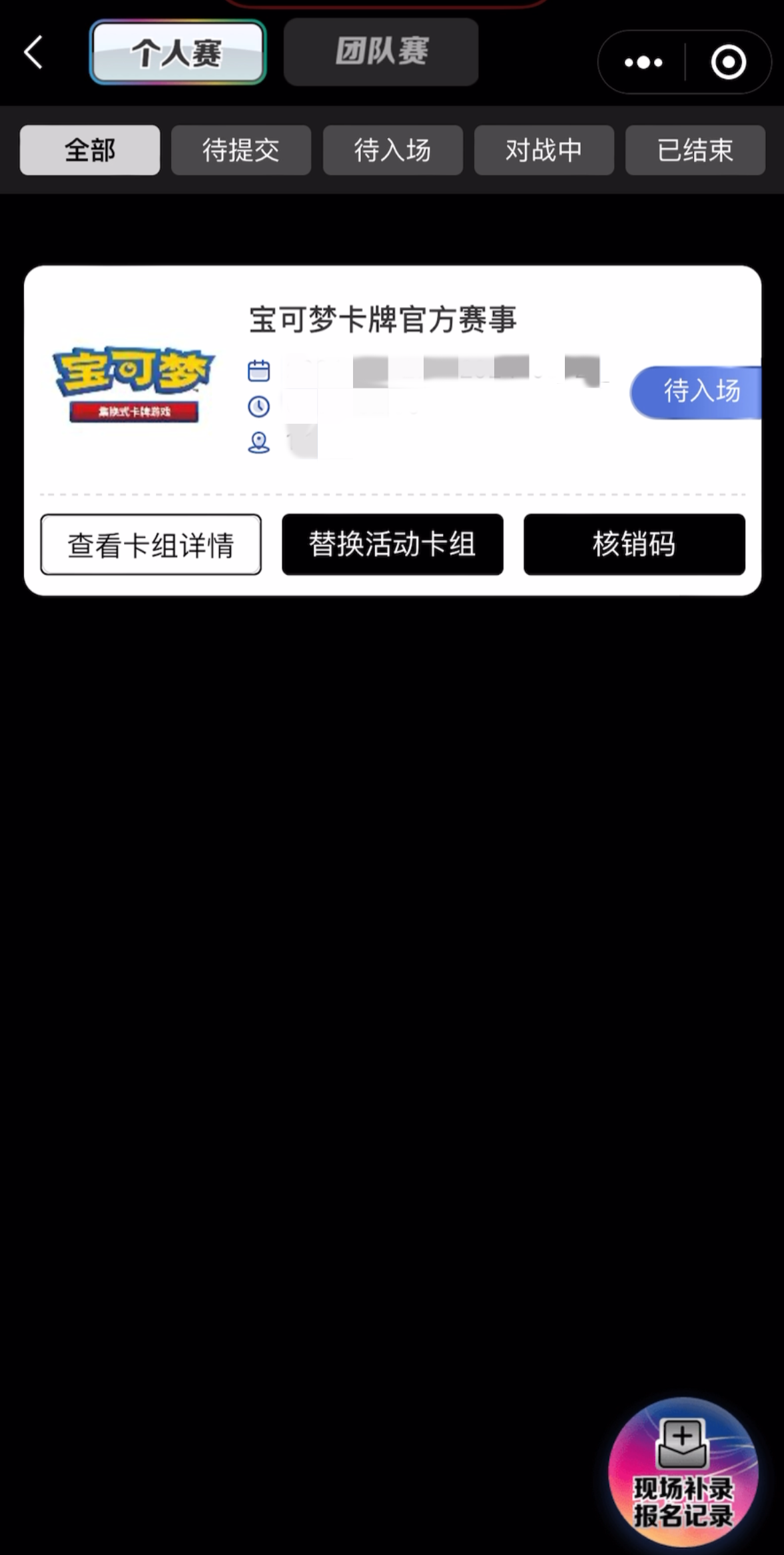 ※提交卡组后才可核销,请参加现场补录的训练家提前在“我的卡组”中准备好参赛用卡组,并于报名成功后尽快提交。