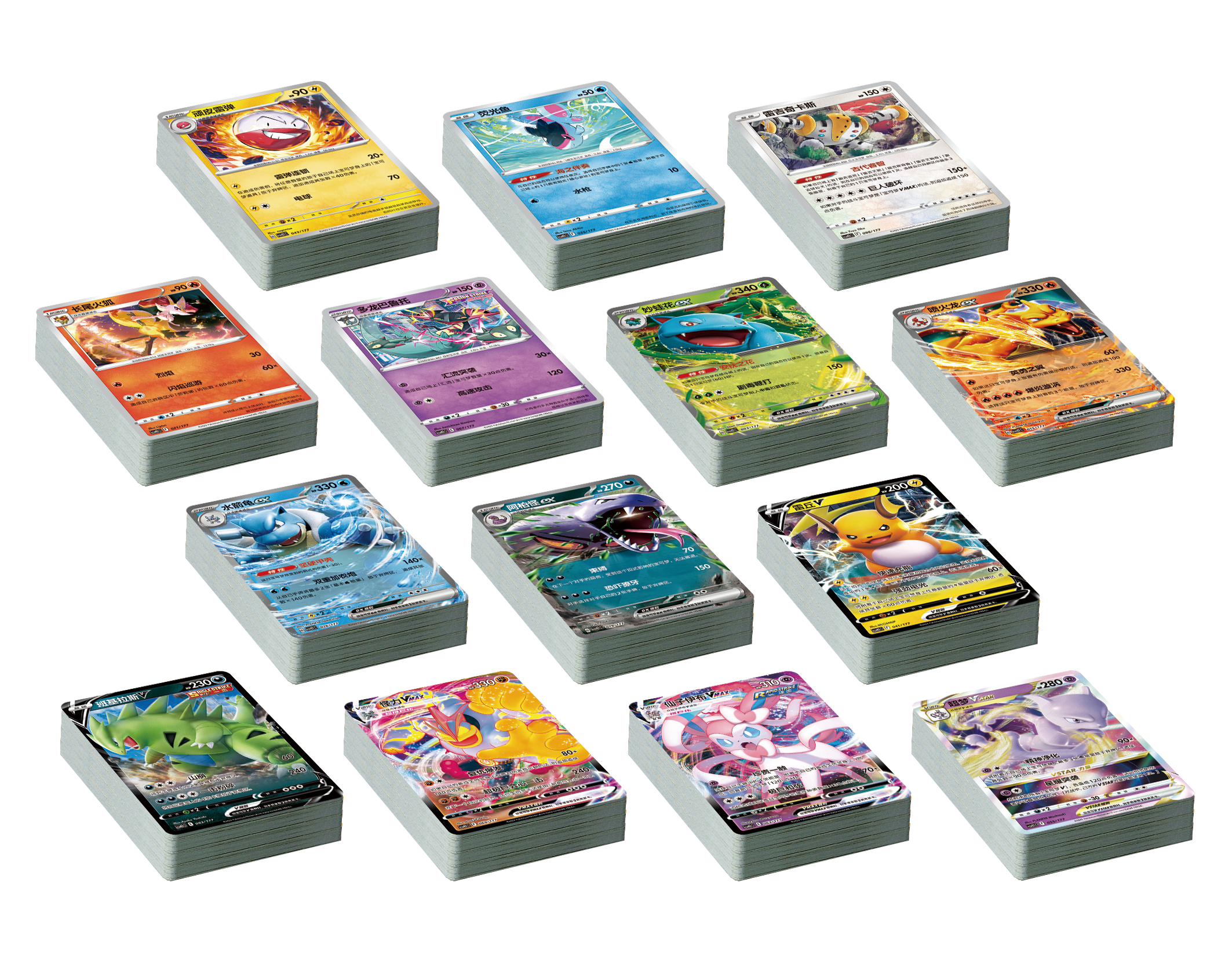 我们精心设计了14款玩法各异的卡组,每盒“对战派对 共梦 下”都会收录其中的8款。希望能让训练家们体会到更丰富多样的对战乐趣。