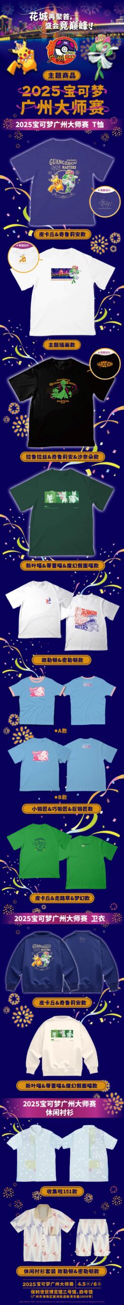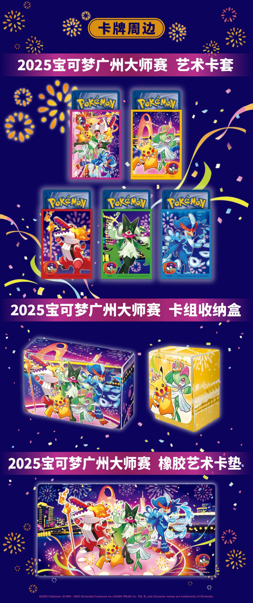 以上卡牌周边商品中,“2025宝可梦广州大师赛 橡胶艺术卡垫” (共3000份) 仅限参加广州大师赛卡牌项目公开组的训练家获得购买资格。