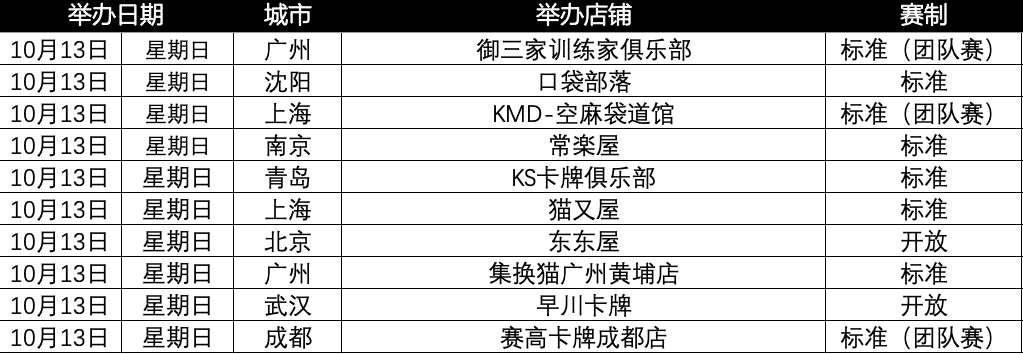 现公布10月13日的城市赛举办场次。