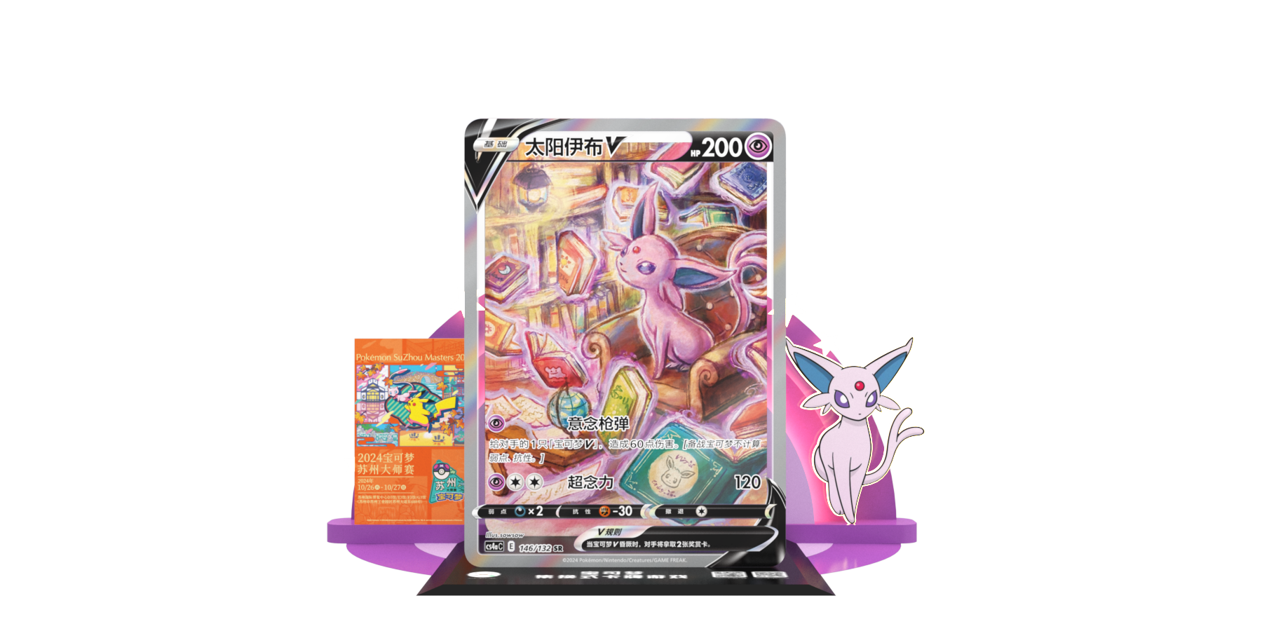带活动TAG#宝可梦苏州大师赛# 上传自己与卡牌的合影至朋友圈/小红书/微博/抖音,并由工作人员核销“宝可梦卡牌探索之旅”活动,即可在苏州大师赛会场内获得现场点数,兑换奖品喔!