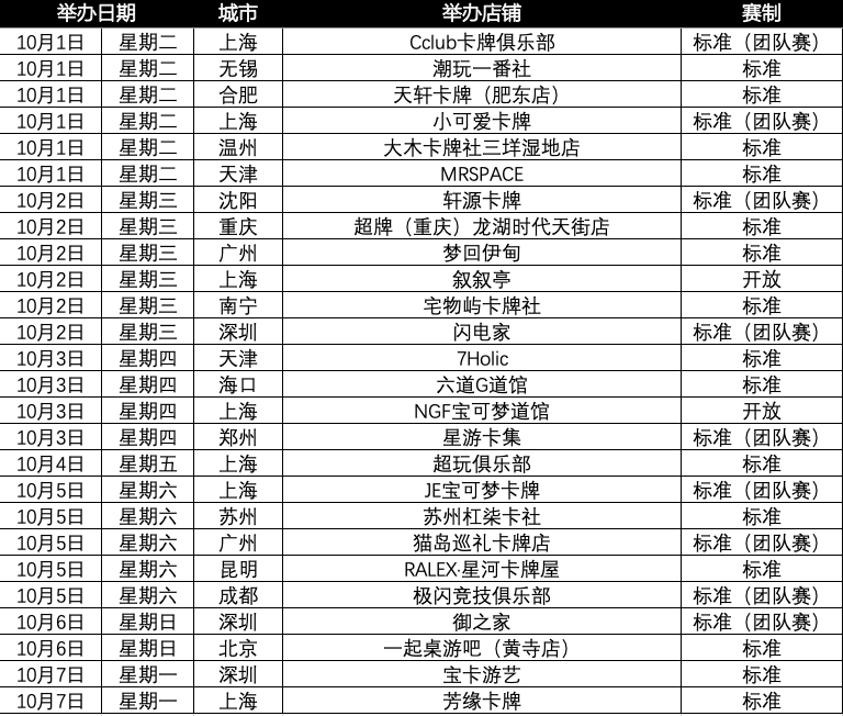 现公布10月1日—10月7日的城市赛举办场次。