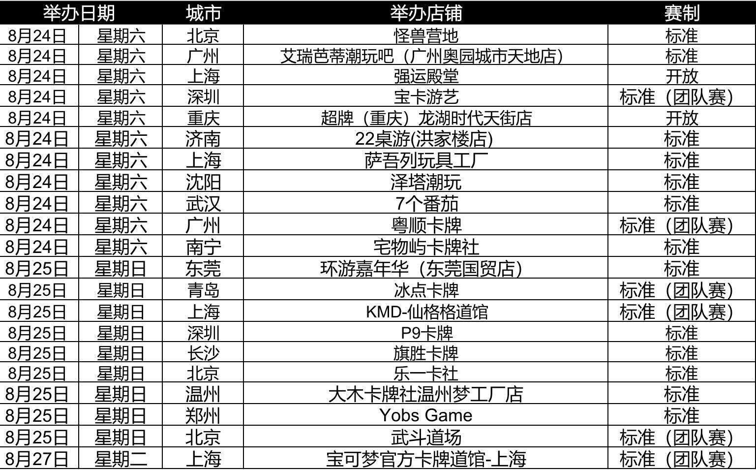 现公布8月24日—8月25日的城市赛举办场次。