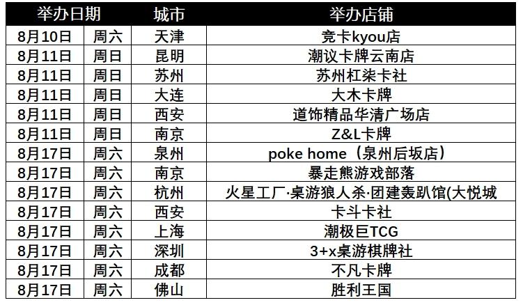 训练家们久等了!现公布“100战百胜”对战活动第一阶段第六批比赛信息,本次比赛信息包含8月10日至8月17日场次安排。请训练家根据以下信息参加相应比赛感受卡牌对战的乐趣。