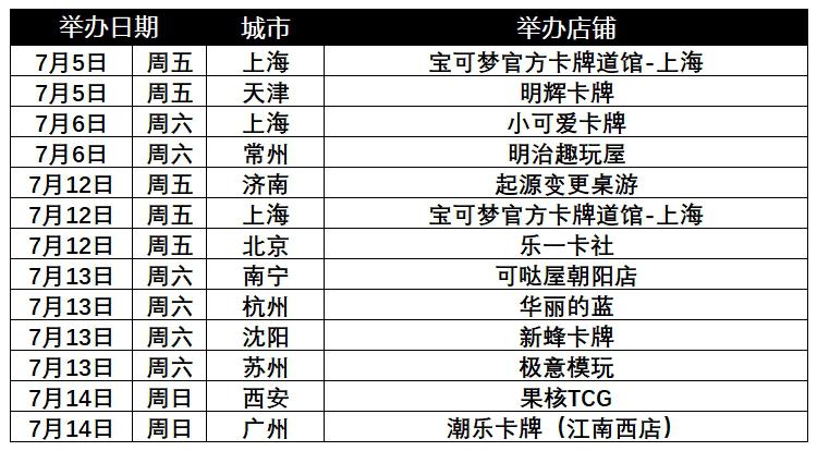 7月5日~7月14日期间场次的报名将于7月2日18:00:00—7月3日23:59:59开启,先到先得,训练家可于7月4日在小程序上自行查看报名结果。现场可补录。后续比赛的报名时间请关注官方信息。