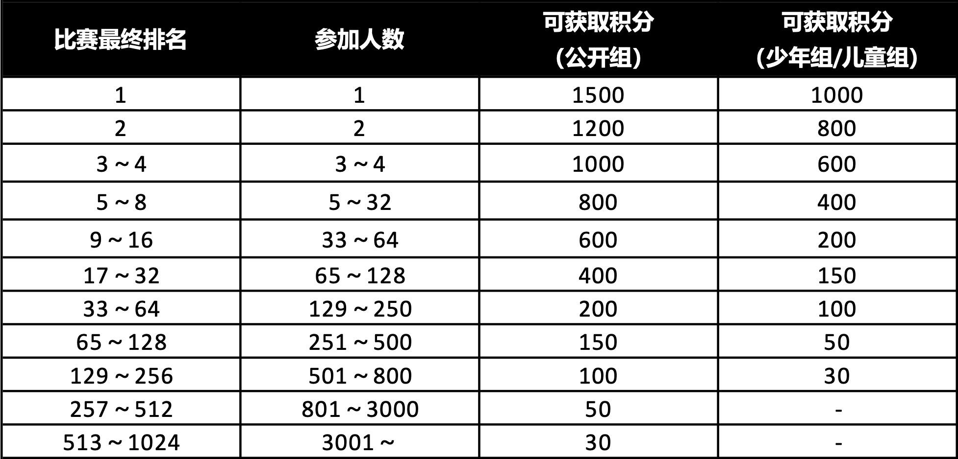参与本次赛事并取得一定名次的训练家可获得官方赛事积分。官方赛事积分可用于获得特定官方赛事的参赛资格等。本次赛事的积分赋予规则如下: