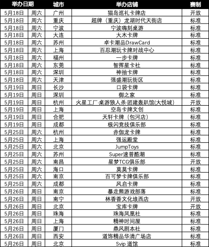 现公布5月18日—5月26日的城市赛举办场次。