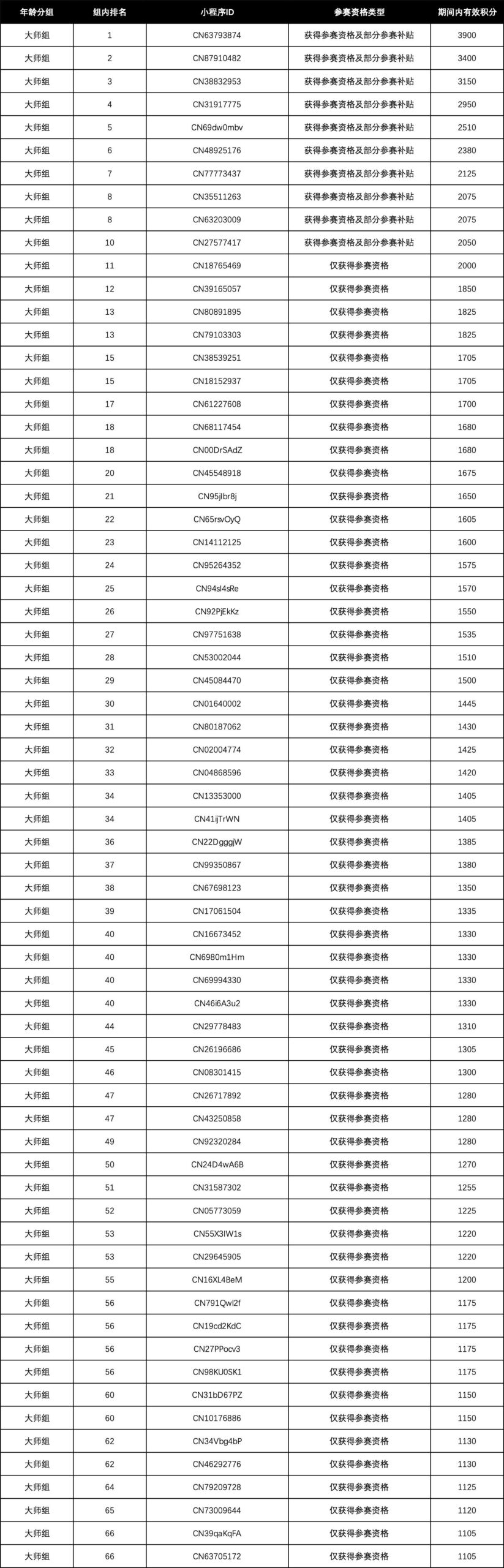 获得本次世界锦标赛卡牌项目参赛资格的训练家名单如下: