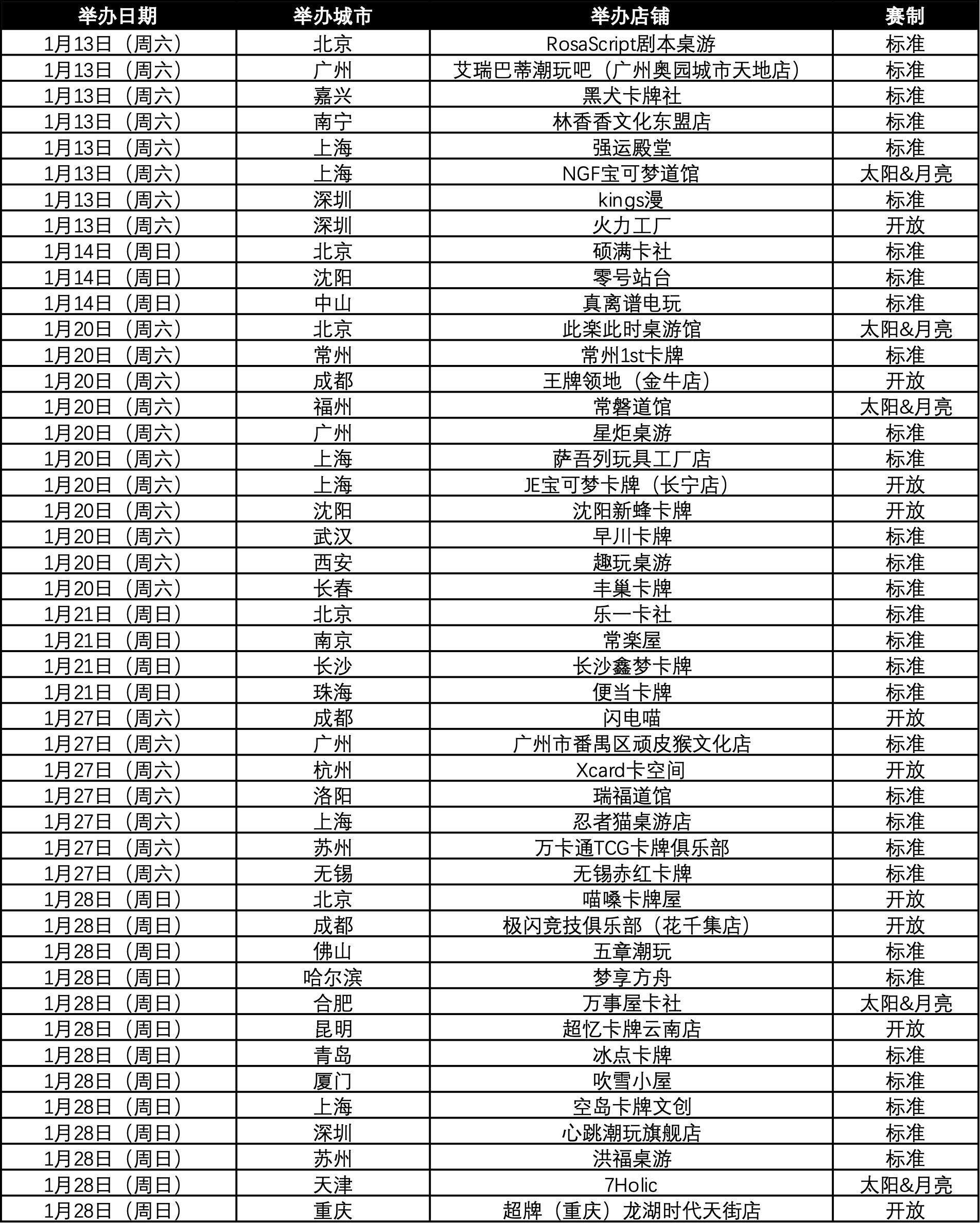 现公布1月13日—1月28日的城市赛举办场次。