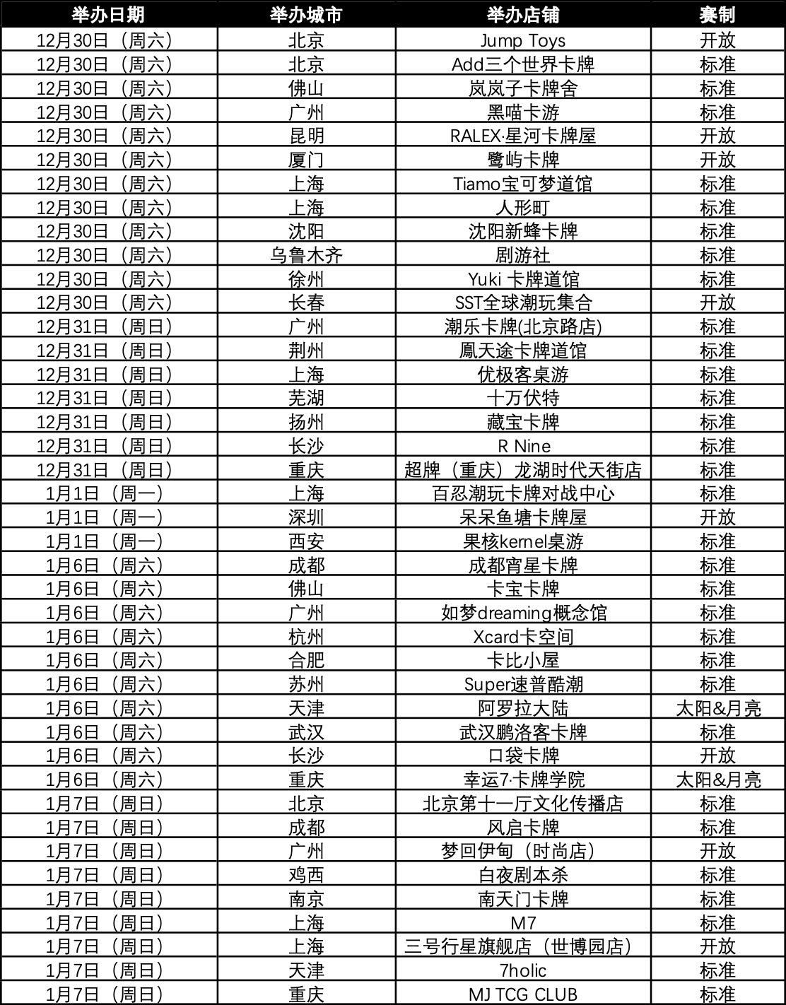 现公布12月30日~1月7日的城市赛举办场次。