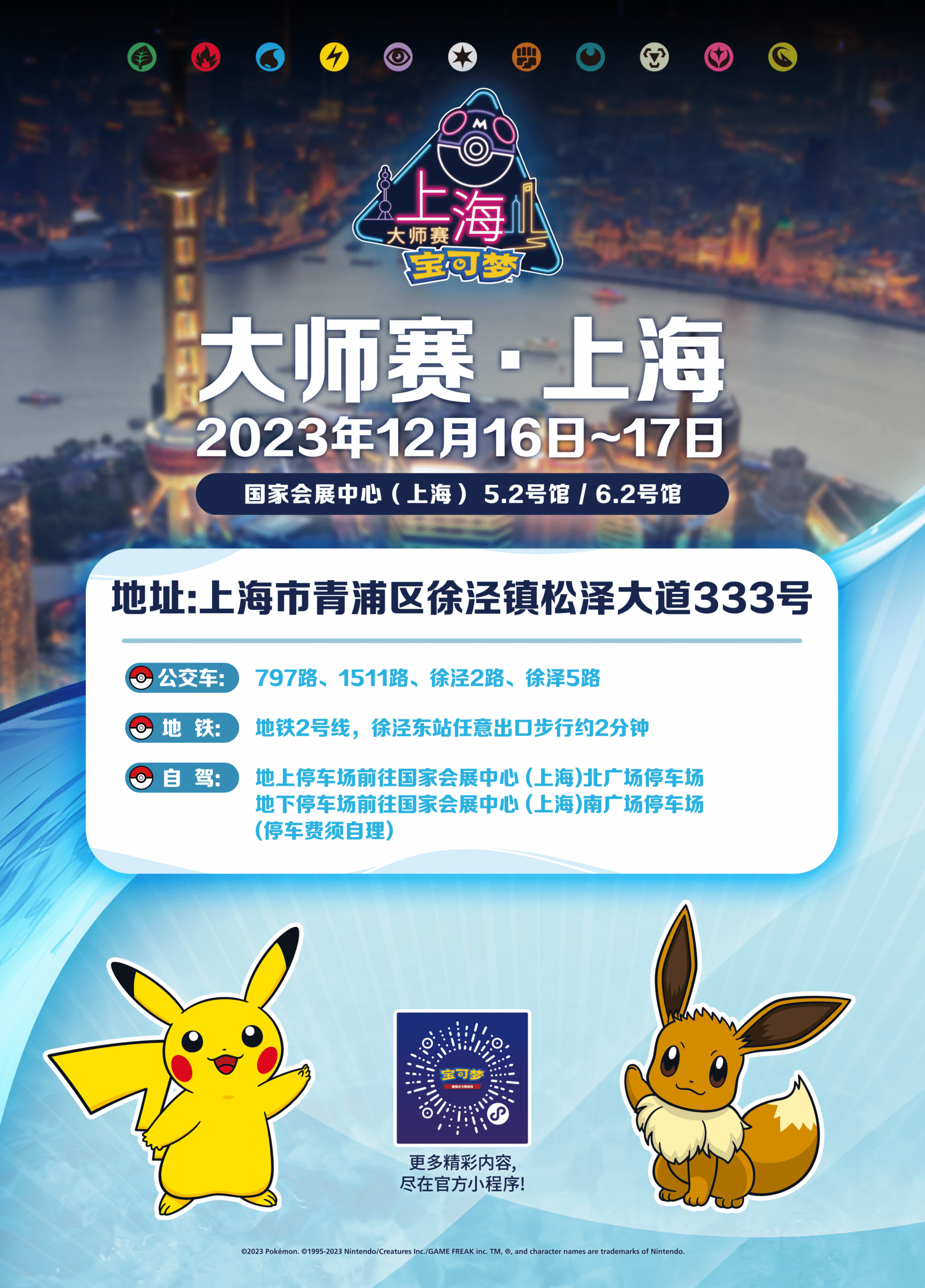 “2023宝可梦卡牌大师赛·上海”(以下简称“大师赛·上海” )将于12月16日~17日在国家会展中心(上海)5.2号馆&6.2号馆举办。