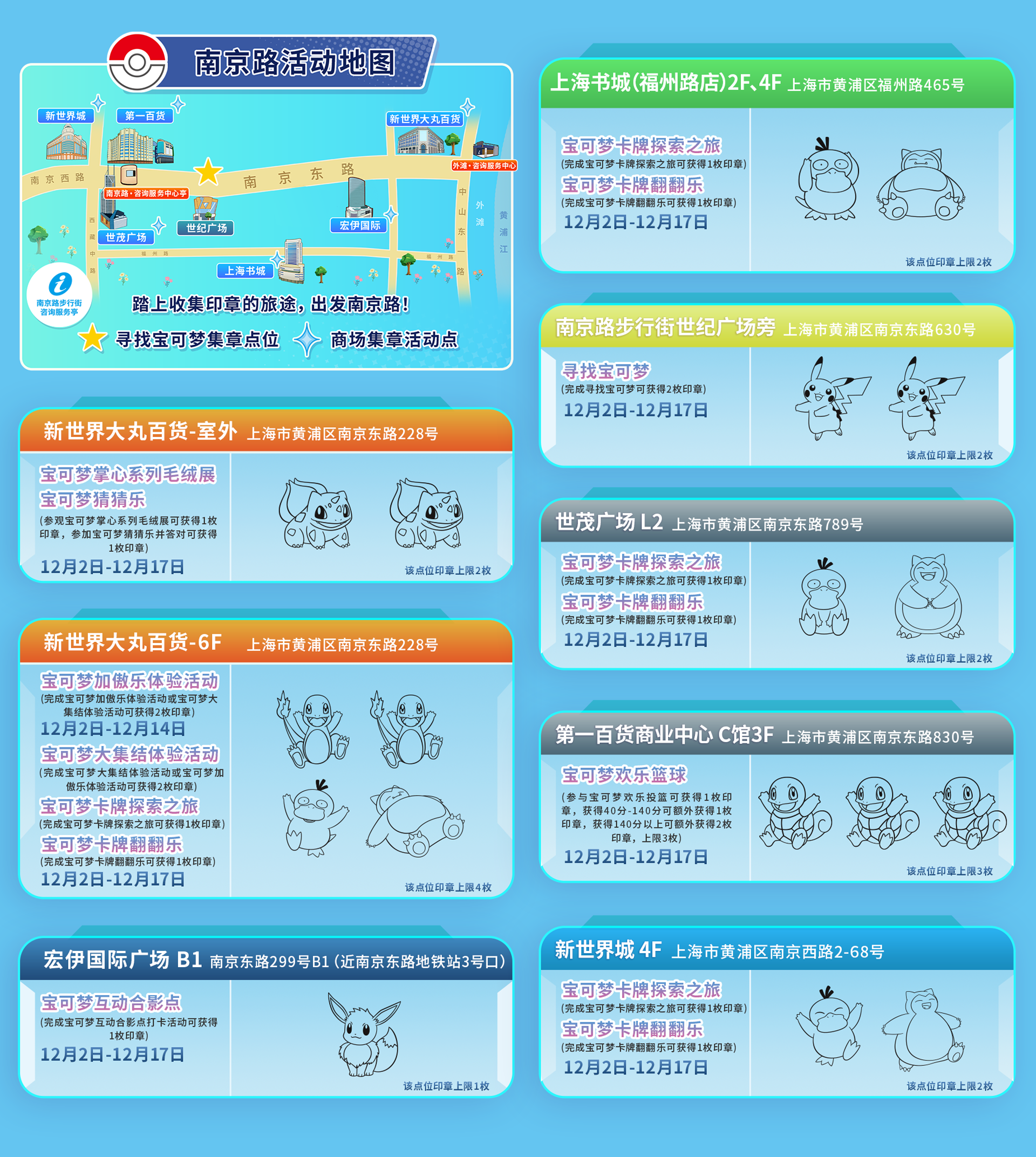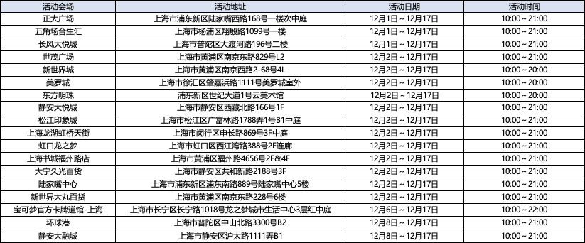 在12月2日—17日期间,南京路周边的商场等处将会举办各种宝可梦活动。