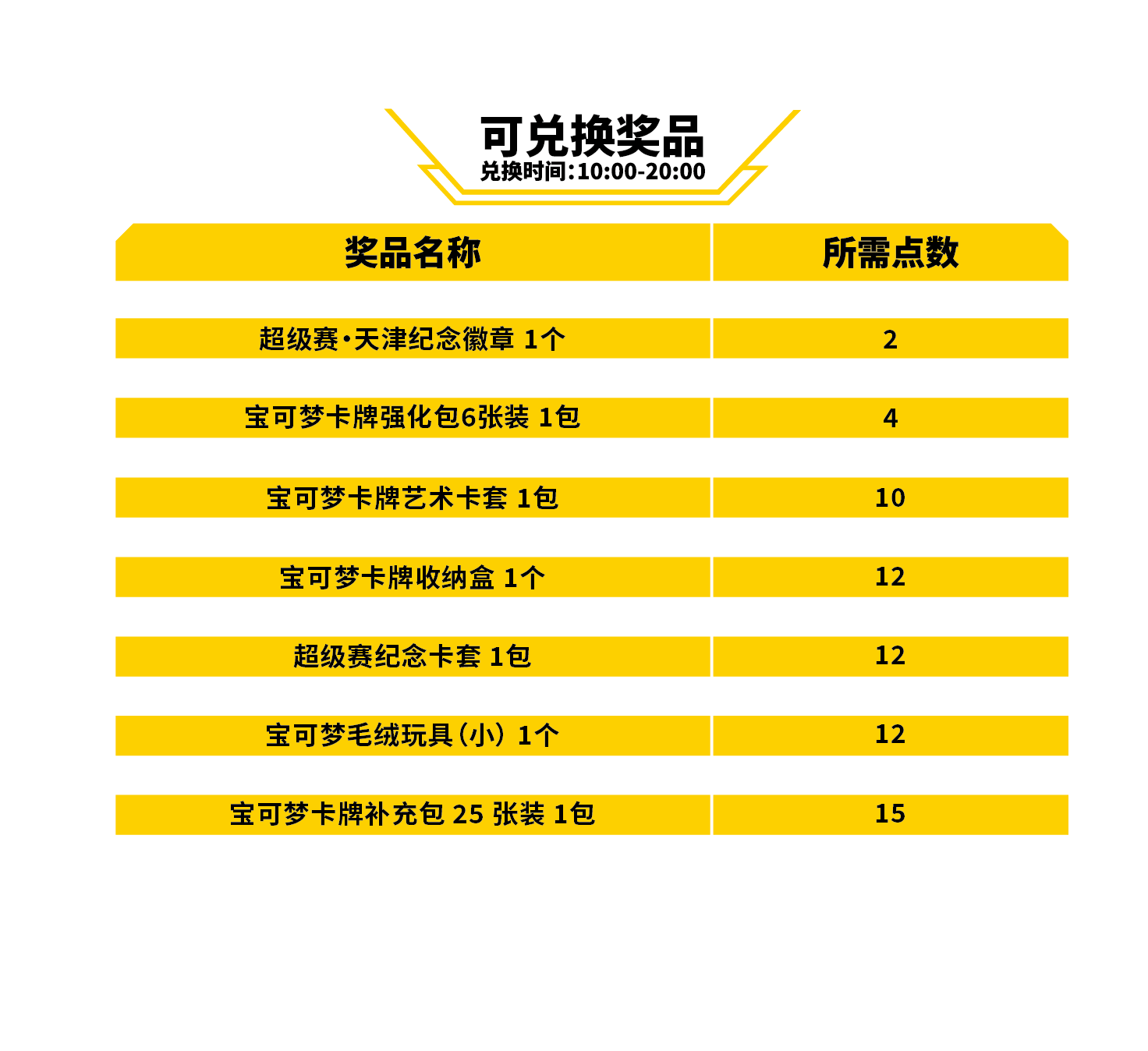 在超级赛·天津各组比赛获得一定胜场数或正赛取得一定名次,或参加宝可梦卡牌场外活动将有机会获得超级赛·天津现场点数,训练家可通过积累点数在现场“场外赛兑奖处”兑换相应的礼品,更有超级赛专属礼品等你来拿!