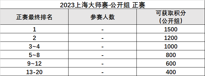 本次“大师赛·上海”公开组将采用部分邀请制,