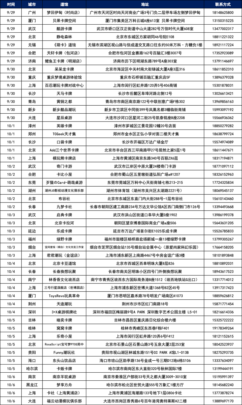 9月29日~10月6日期间的活动,训练家可从2023年9月27日10点起,通过宝可梦卡牌会员小程序进行报名,先到先得,现场可补录。(各道馆具体报名开始时间请通过小程序查询,建议致电咨询道馆后前往)