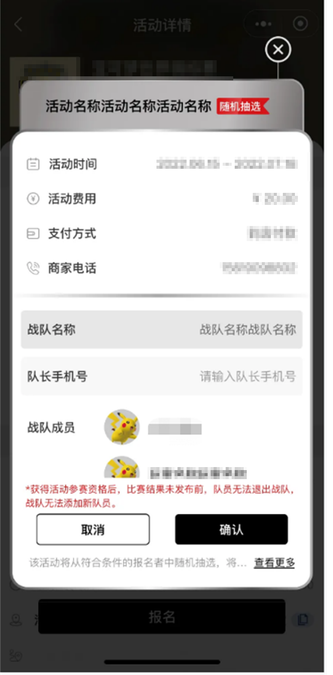 ·通过线上报名随机抽选获得。(仅队长可报名。报名成功后队长界面会有显示,队员界面没有活动显示。)