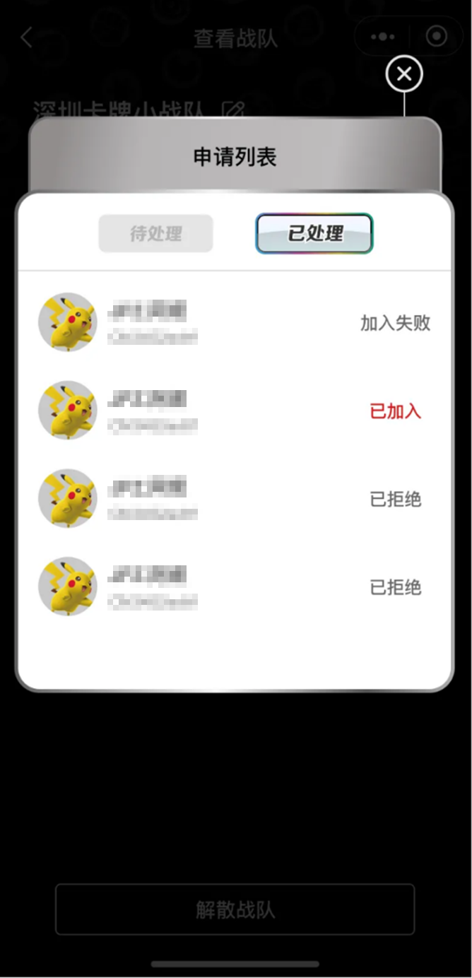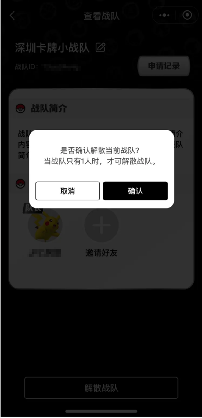 3.2 训练家可点击队长分享的邀请页面加入战队。并可随时退出战队。