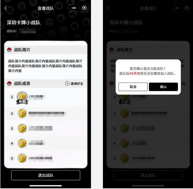 ※退出战队后的45天内将无法创建或加入新的战队,请谨慎进行加入或退出的操作。